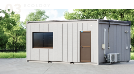 このため、プレハブや従来工法と比べ工期が短く、移設や増設に柔軟に対応でき、施工時の廃棄物が少なく環境にやさしい商品です。